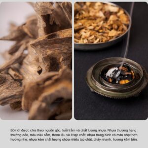 Nhiều loại nhang giá rẻ trên thị trường hiện nay thường được pha chế từ gỗ vụn, hương liệu tổng hợp và keo hóa học, thay vì sử dụng bột trầm tự nhiên. Những sản phẩm này nhìn bề ngoài có thể giống trầm thật, nhưng về chất lượng và hương thơm hoàn toàn khác biệt. Chúng không mang lại hương thanh khiết tự nhiên, mà thay vào đó là mùi nồng gắt, khói dày và nhanh tàn.