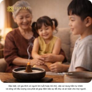 Đặc biệt, với gia đình có người lớn tuổi hoặc trẻ nhỏ, việc sử dụng trầm tự nhiên và xông với liều lượng vừa phải sẽ giúp đảm bảo sự dễ chịu và an toàn cho mọi người.