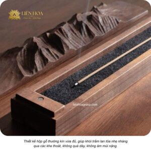 Thiết kế khe thoát khói vừa phải của hộp gỗ trưng trầm giúp làn khói trầm lan tỏa nhẹ nhàng, không dồn mùi quá mạnh tại một điểm. Nhờ đó, hương trầm trở nên dễ chịu, không gây ngột ngạt hay cay mắt. Điều này đặc biệt phù hợp với những ai dùng trầm trong trà đạo, yoga hoặc thiền định – nơi cần sự cân bằng và thư giãn tinh thần.