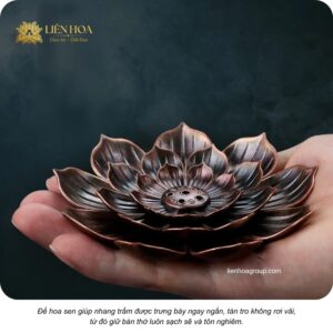 Nhiều gia đình hiện nay lựa chọn chân cắm nhang hoa sen Liên Hoa nhờ thiết kế hài hòa, tinh gọn và dễ phối cùng nhang trầm vòng Liên Hoa. Khi trầm vòng được đặt đúng đế, hương lan tỏa đều, tro rơi gọn, vừa đảm bảo thẩm mỹ vừa giữ không gian thờ cúng luôn thanh tịnh, an toàn khi sử dụng lâu dài.