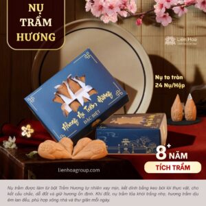 Nụ trầm được làm từ bột Trầm Hương tự nhiên xay mịn, kết hợp cùng keo thực vật từ vỏ cây bời lời. Nhờ vậy, nụ trầm có kết cấu chắc, dễ đốt và giữ hương ổn định. Hình dáng nụ chóp hoặc búp sen nhỏ gọn giúp người dùng thao tác nhanh, tiện lợi trong nhiều không gian.