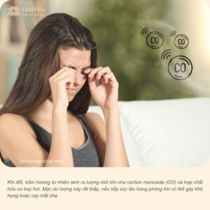Khi đốt, trầm hương tự nhiên sinh ra một lượng rất nhỏ các khí như carbon monoxide (CO) và hợp chất hữu cơ bay hơi. Ở mức độ thấp, chúng hầu như không gây hại. Tuy nhiên, nếu đốt quá nhiều trong phòng kín, bạn có thể cảm thấy khô họng hoặc cay mắt nhẹ.