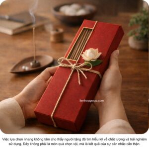 Việc lựa chọn nhang không tăm cho thấy người tặng đã tìm hiểu kỹ về chất lượng và trải nghiệm sử dụng. Đây không phải là món quà chọn vội, mà là kết quả của sự cân nhắc cẩn thận. Trong những mối quan hệ cần sự chừng mực, chi tiết này giúp người tặng ghi điểm một cách tinh tế. Món quà trở nên có chiều sâu hơn so với các lựa chọn thông thường.