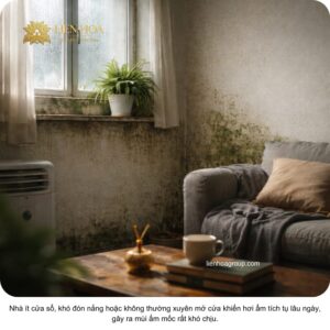 Mùi hôi ẩm mốc kéo dài khiến không gian sống bí bách, ảnh hưởng đến giấc ngủ và tâm trạng, làm giảm chất lượng cuộc sống.