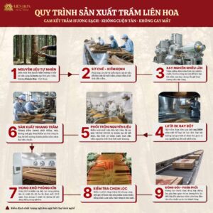 Được thực hiện chỉn chu, nói không với hóa chất, nhằm giữ trọn tinh dầu và linh khí của trầm hương. Từ nền tảng này, Liên Hoa phát triển nhiều dòng nhang trầm sạch, đáp ứng đa dạng nhu cầu sử dụng trong đời sống hằng ngày.