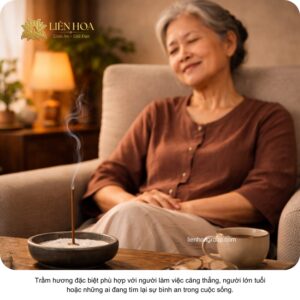 Do đó, trầm hương đặc biệt phù hợp với người làm việc căng thẳng, người lớn tuổi hoặc những ai đang tìm lại sự bình an trong cuộc sống.