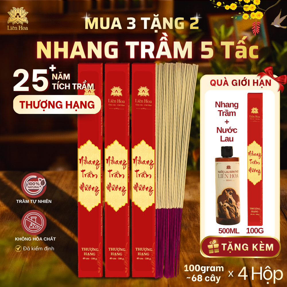 [MUA 3 TẶNG 2] Nhang Trầm 49cm THƯỢNG HẠNG (100gr/hộp) | Trầm Sạch | Thơm | 100% Tự Nhiên | Thờ Cúng (Hương 5 Tấc thắp Tết)