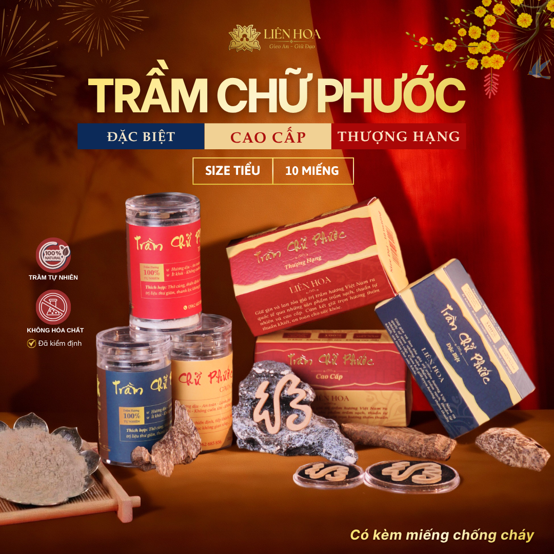 Trầm Hương Chữ Phước – 10 miếng – ĐẶC BIỆT – CAO CẤP – THƯỢNG HẠNG – Size Tiểu| Sạch | Thơm |100% Tự Nhiên | Phong Thủy