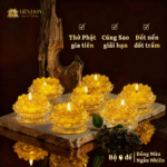 Bộ 6 Đế Nến Hoa Sen Lưu Ly Liên Hoa là vật phẩm trang trí tâm linh mang vẻ đẹp thanh tịnh và hài hòa, thường được sử dụng trên bàn thờ Phật, bàn thờ gia tiên hoặc không gian thiền – trà. Thiết kế đế thấp giúp tổng thể bàn thờ gọn gàng, cân đối, phù hợp với nhiều không gian khác nhau.