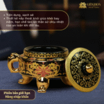 - Chân, nắp và quai được xử lý phủ kim vàng