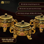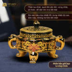 - Tên sản phẩm: Lư Xông Trầm 3 Chân Hoa Văn Kim Vàng Cao Cấp Liên Hoa