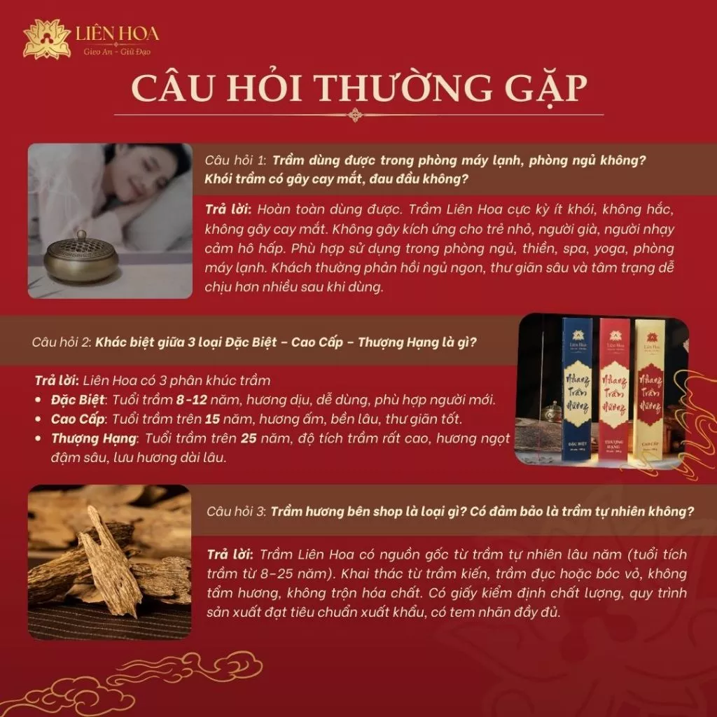 Lưu ý: Trầm hương Liên Hoa là trầm tự nhiên, bảo quản đúng cách càng để lâu mùi càng ổn định và dễ chịu hơn.