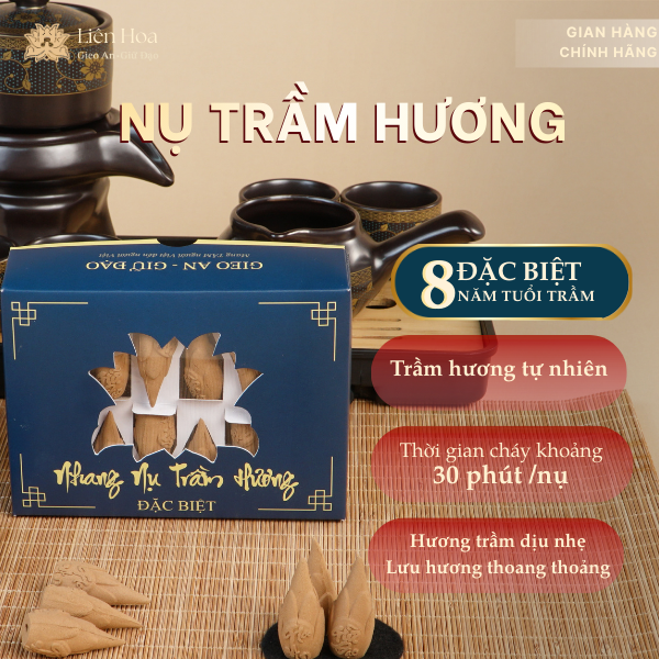 Nụ Trầm Hương Đặc Biệt Liên Hoa là lựa chọn phù hợp để xông thơm nhà cửa, làm mới không gian sống và tạo bầu không khí ấm cúng trong các dịp lễ Tết, ngày rằm hoặc dọn dẹp cuối năm. Sản phẩm được tạo hình búp sen trang nhã, hương trầm ấm nhẹ, dễ chịu, phù hợp nhiều không gian sinh hoạt.