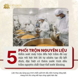 Liên Hoa không đi theo lối mòn của thị trường. Thay vào đó, thương hiệu đầu tư vào quy trình chiết xuất tinh dầu trầm hương riêng biệt, kết hợp giữa thủ công truyền thống và công nghệ hiện đại.