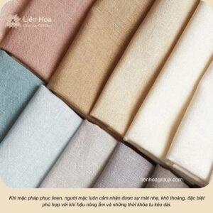 Đối với pháp phục, linen được xem là chất liệu lý tưởng vì vừa đáp ứng nhu cầu mặc lâu, vừa giữ được sự trang nghiêm cần thiết. Chính từ nền tảng này, Liên Hoa phát triển các dòng pháp phục sử dụng linen và linen Hàn Quốc – phiên bản linen được xử lý mềm hơn, ít xù và ổn định sợi hơn.