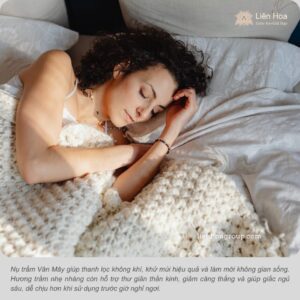 Hương trầm có tác dụng thư giãn hệ thần kinh, giúp ổn định nhịp thở và đưa cơ thể vào trạng thái nghỉ ngơi tự nhiên. Đốt Trầm Vân Mây trước khi ngủ khoảng 15–20 phút giúp tâm trí lắng dịu, giảm căng thẳng và hỗ trợ giấc ngủ sâu hơn. Đặc biệt phù hợp với những người hay mất ngủ, ngủ không sâu hoặc thường xuyên căng thẳng tinh thần.